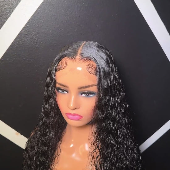 Water wave curly 200% density human hair wigs (black)